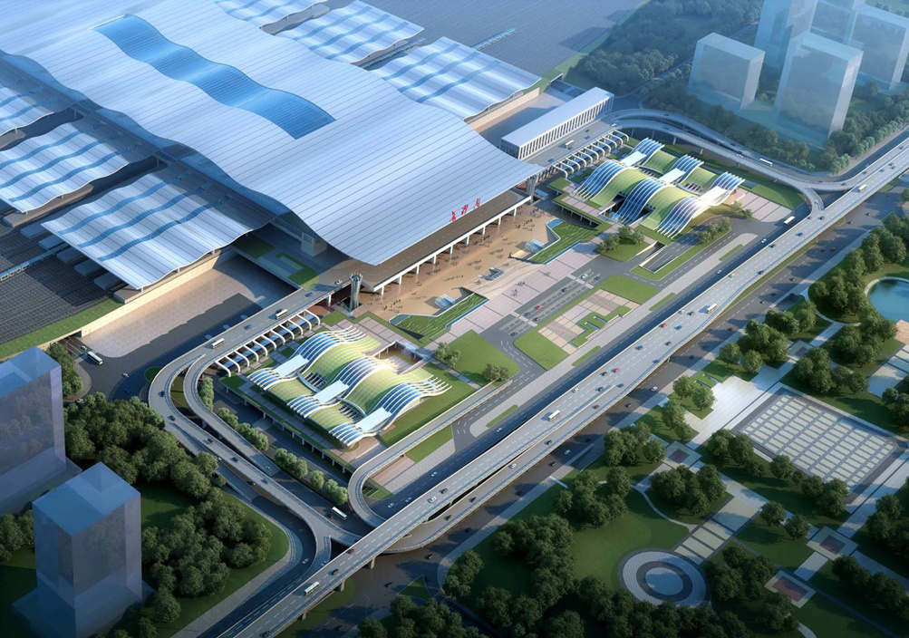 长沙火车南站东广场是长沙火车南站的配套进出站广场,是国铁、地铁、磁悬浮、公交、出租、社会车、大巴车等交通方式实现零换乘的新型交通枢纽广场。东广场规划净用地面积70620㎡,总建筑面积169326.56㎡,其中地下建筑面积 153518.36平方米,地上建筑面积为15808.16平方米。整个东广场分为两大部分:地下静态交通及换乘广场、地上疏散及景观广场。