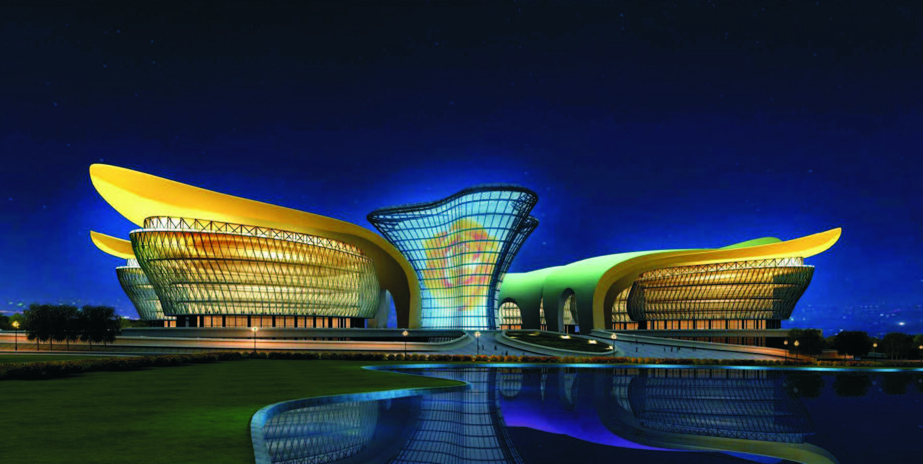 乌鲁木齐市文化中心整个建筑看起来像犹如一朵盛开的雪莲,建成后将成为展现乌鲁木齐城市魅力的一座标志性建筑。