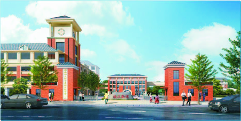 总用地面积47527.07m², 净用地面积37706.51m² 。包括教学实验楼、行政综合楼、食堂/体艺楼/教师周转用房、门卫、风雨跑道等,均为多层建筑, 地下—层车库及设备房。
