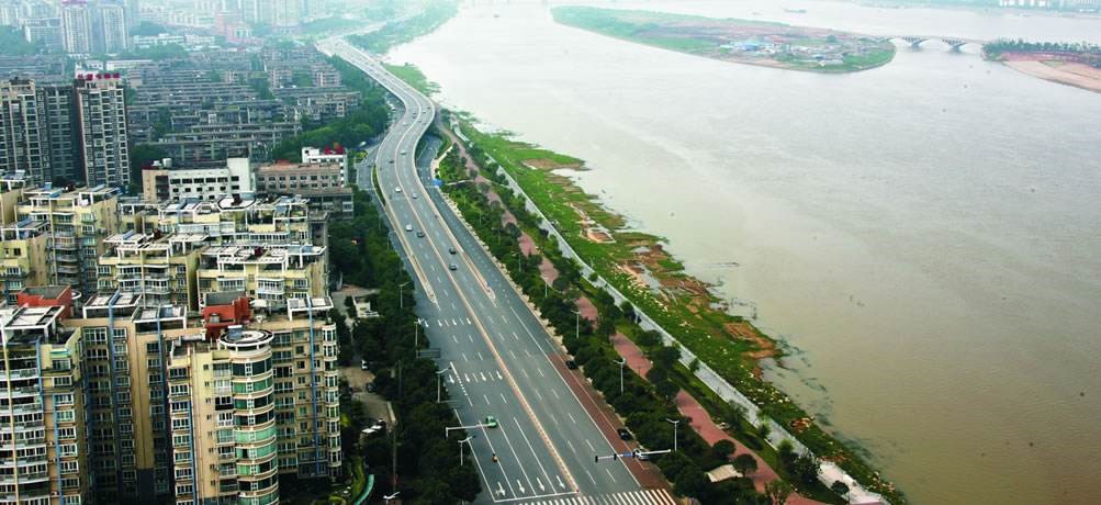 潇湘大道位于岳麓山下湖江之滨,是长沙市湘江西岸南北走向的一条综合型的城市主干道,是长沙市的形象路,堤顶宽